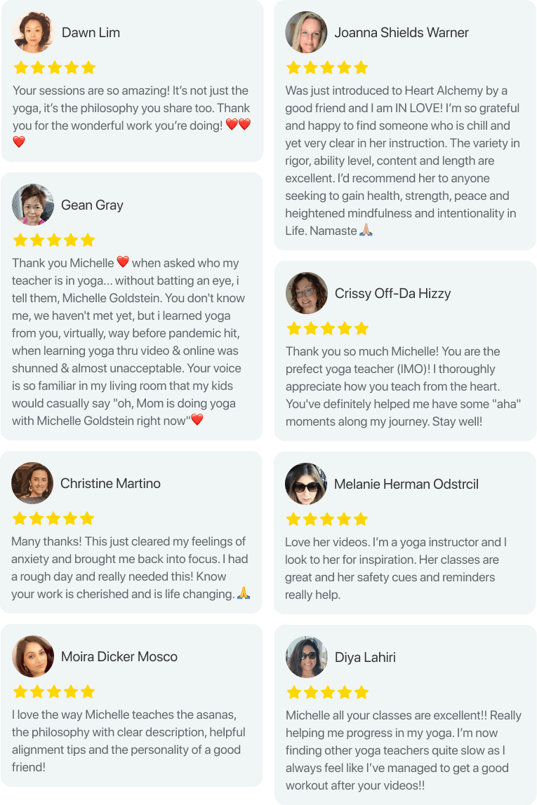 Michelle is the co-founder of Heart Alchemy Yoga, one of the fastest-growing yoga and wellness YouTube channels today. She leads Power Yoga workshops, immersions, and retreats worldwide. Known for her creative sequencing and breath-work, Michelleʼs teaching integrates various forms of movement and meditation.