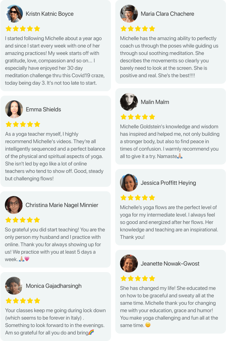 Approaching instruction with a deep spiritual reverence for the sacredness of yoga, coupled with a joyous playful sense of humor, Michelle's classes offer a safe, nurturing, and challenging environment for students to come and explore their mental and physical boundaries.